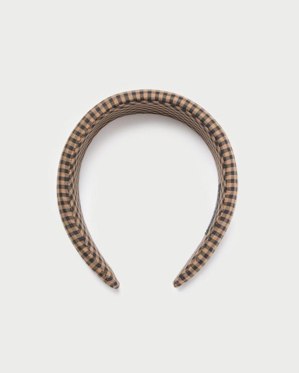 Make a stylish statement with this beautifully crafted puffy headband featuring an elegant brown and black checked pattern that adds sophistication to any outfit.