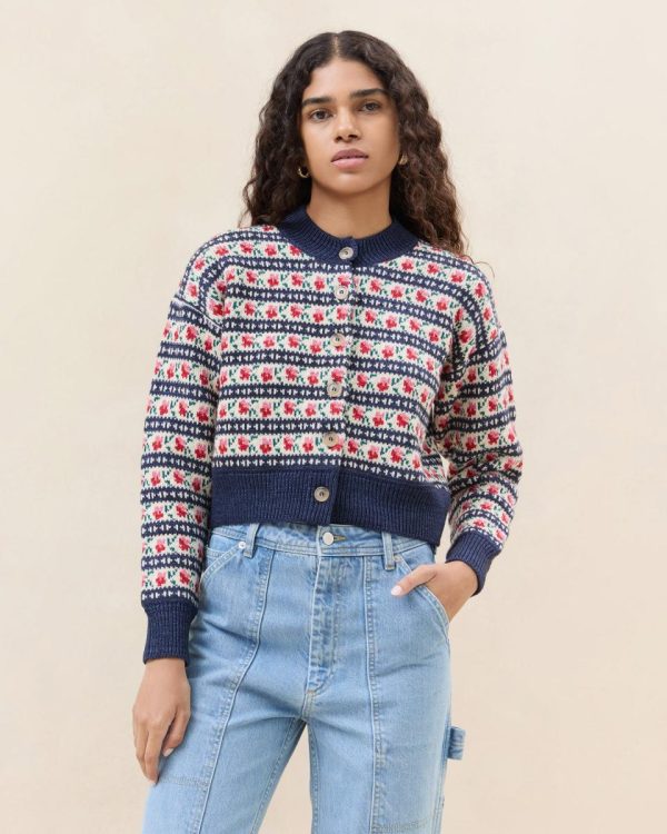 Women Knitwear | Loeffler Randall Idris Blue Jean Floral Cardigan L Sweaters & Knits L Apparel